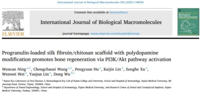客户论文发表 | 聚多巴胺修饰的前颗粒蛋白负载丝素壳聚糖支架通过激活PI3K/Akt通路促进骨再生